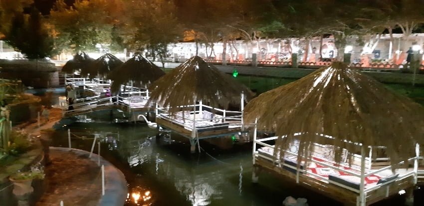 این رستوران در بلوار هاشمی رفسنجانی در رفسنجان قرار داره و یک باغ بزرگ با درخت های بلند و زیباست که با دریاچه مصنوعی در میان محیطی زیبا و دلچسب رو برای صرف غذا فراهم کرده.در این باغ رستوران آلاچیق های متعددی در فضای باغ و در میان دریاچه مصنوعی قرار دارد و همچنین غرفه هایی با دیوارهای شیشه ای نیز دارد که پاسخگوی همه سلیقه ای باشد.غذای این رستوران با کیفیت و خوشمزه است و به همین دلیل و همچنین محیط خوبی که دارد همواره شلوغ است.سفارش ما جوجه ترش و غذایی به نام شکاری بود که تیکه های گوشت با سس مخصوص بود که مقداری تند و تیز بود و از کیفیت هر دو راضی کننده بود.